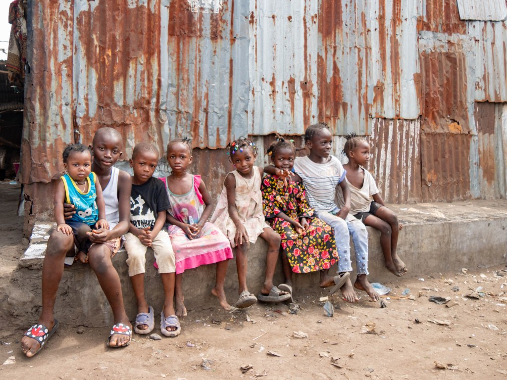 Kinderen in de sloppenwijk naast Kingtom Ghetto in Freetown, Sierra Leone